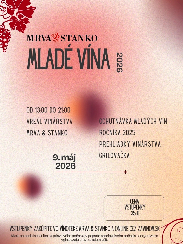 Srdečne vás pozývame na VII. ročník podujatia Deň mladých vín v MRVA & STANKO 2026. Po úspešnom piatom ročníku budú opäť pivnice nášho vinárstva otvorené v sobotu 9. mája 2026 od 13:00 do 21:00 h.